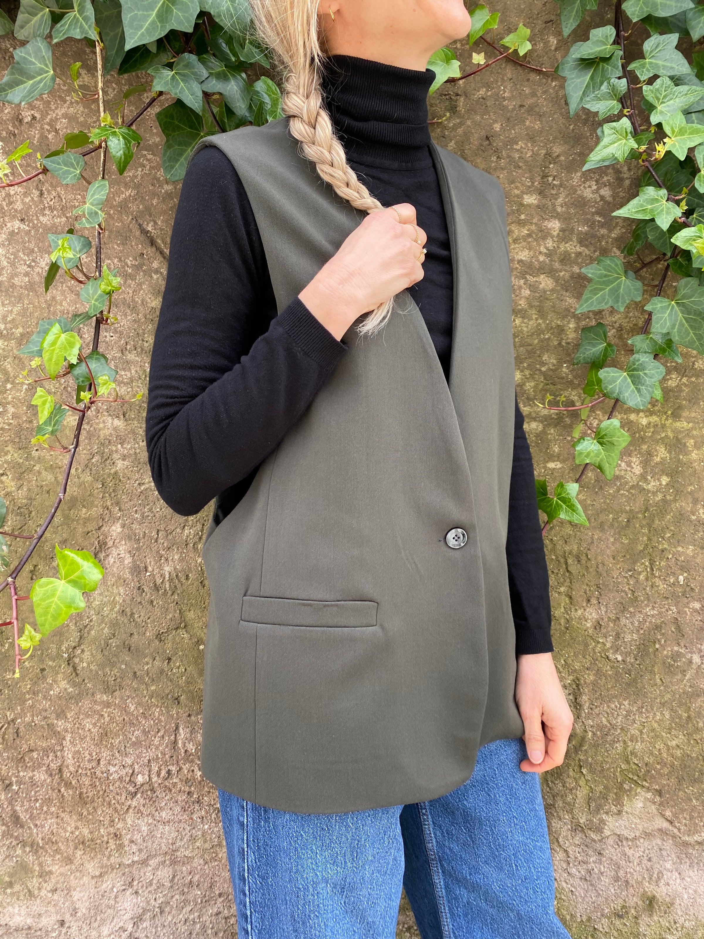 - Gilet dalla vestibilità over con tasche e bottone frontale