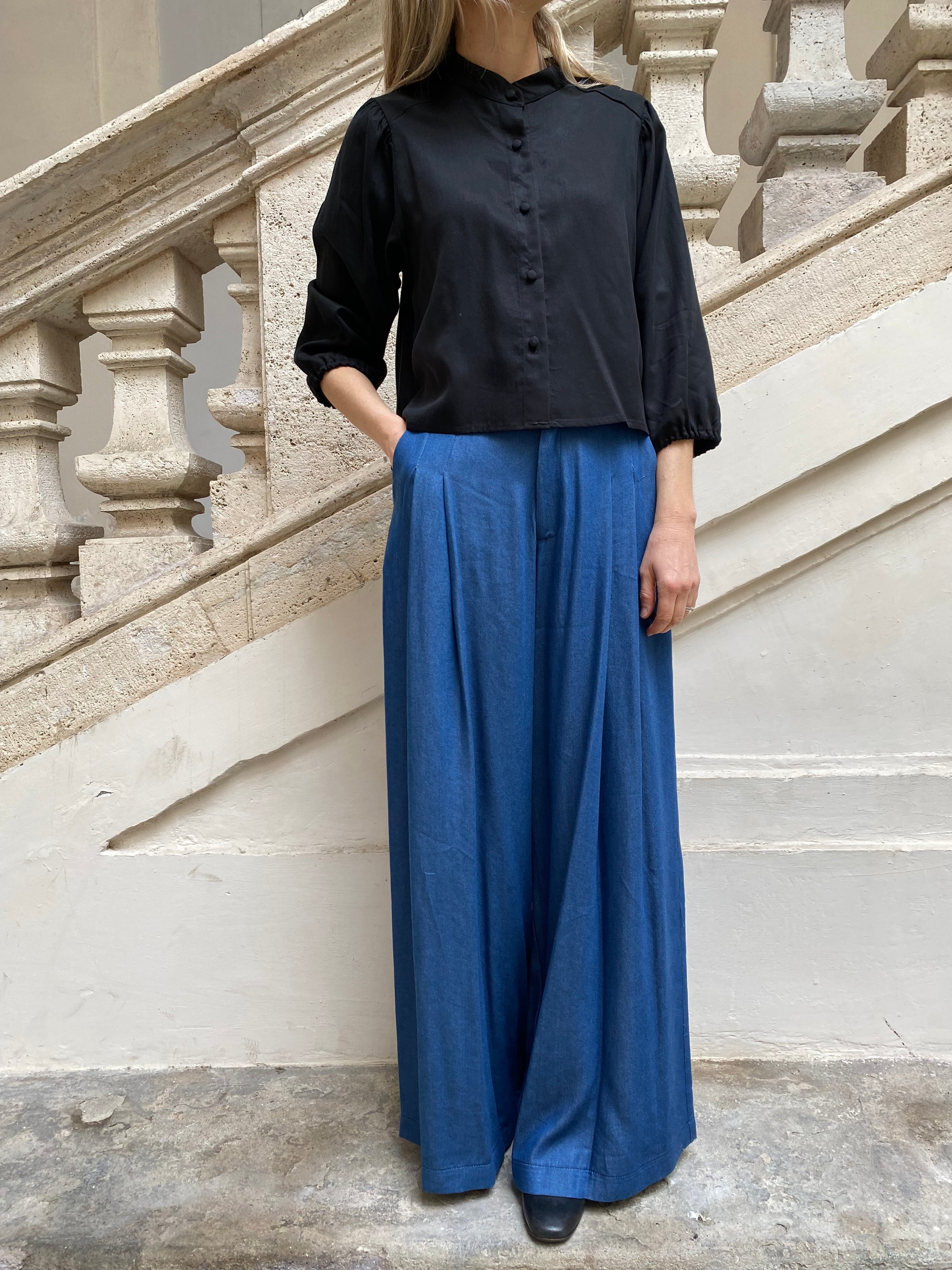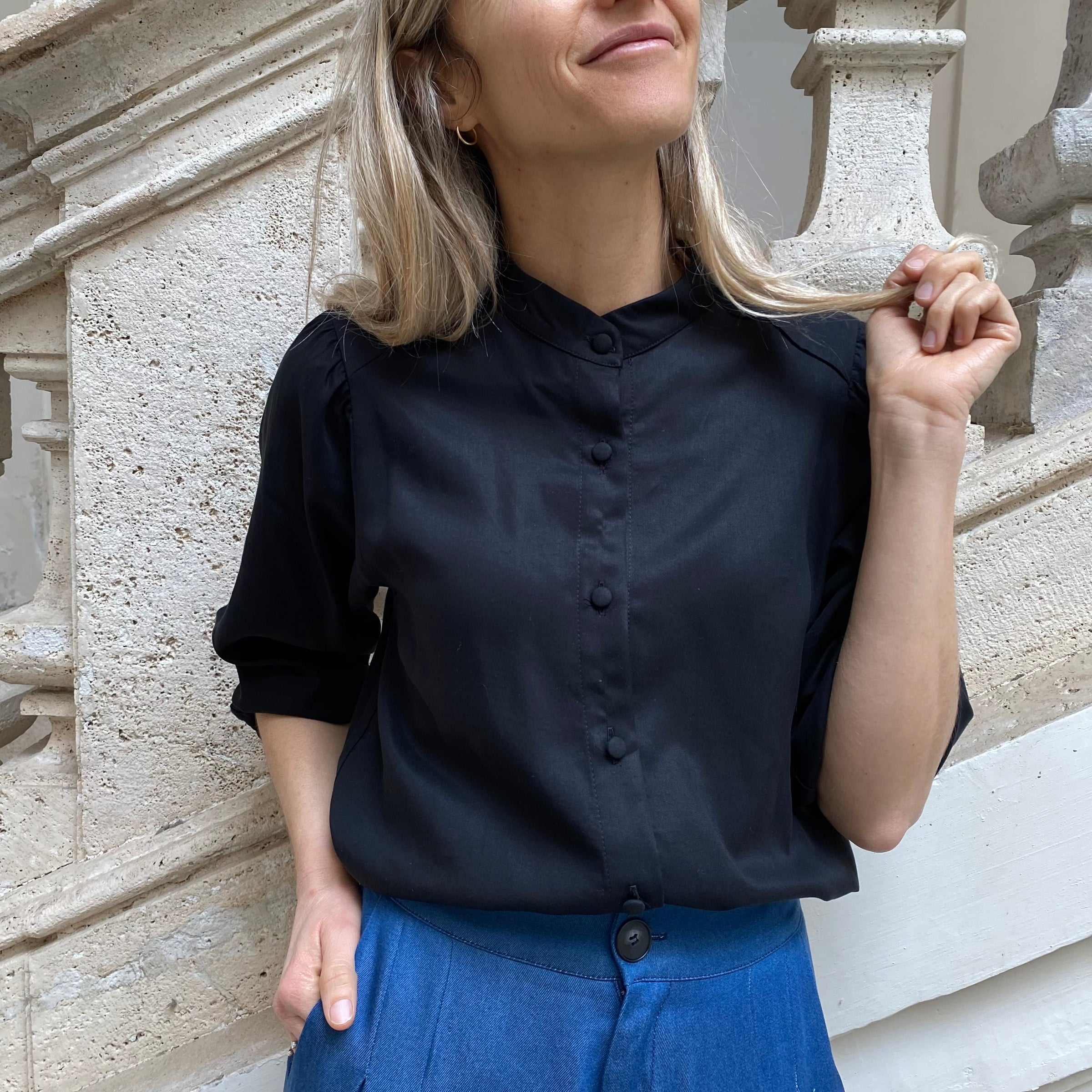 - Camicetta corta leggermente svasata con colletto coreano