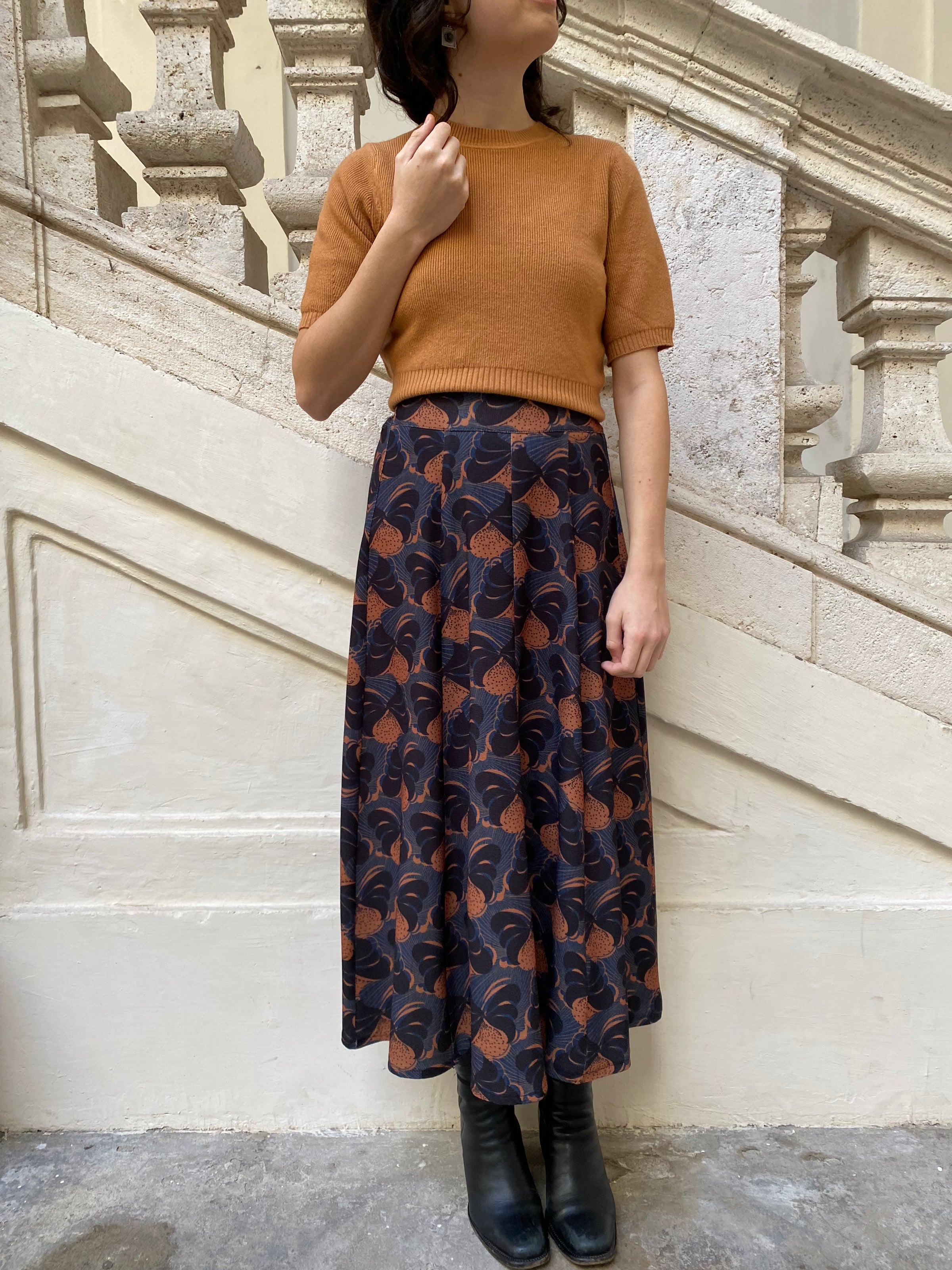 - Gonna longuette con vita elastica sul retro e spicchi frontali