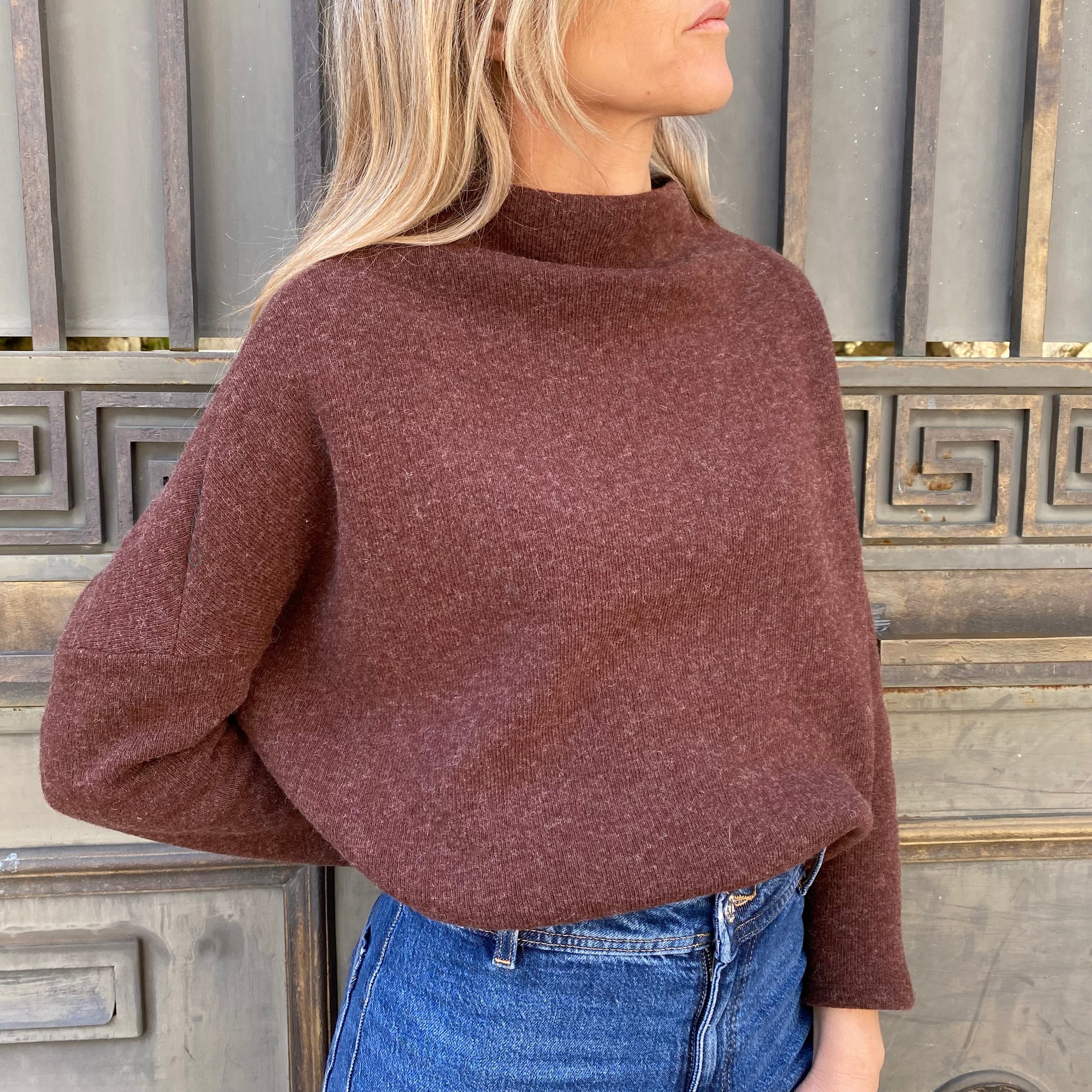 - Maglione dalla vestibilitá ampia con collo a cratere e manica lunga